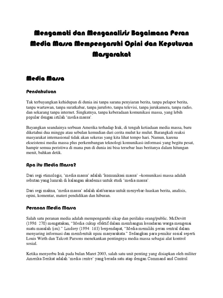 Mengamati Dan Menganalisis Bagaimana Peran Media Massa Mempengaruhi Opini Dan Keputusan Masyarakat