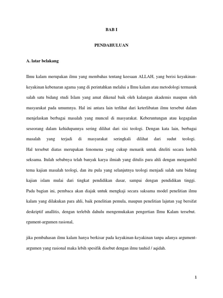 Doc Bab I Pengertian Ilmu Kalam Maf Tukhi Academia Edu