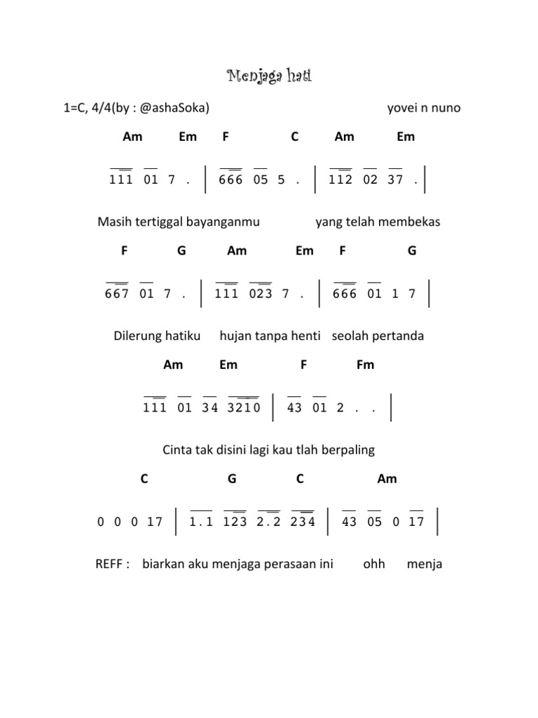 Lirik Dan Chord Kunci Gitar Menjaga Hati Yovie Nuno Biarkan Aku Menjaga Perasaan Ini Tribun Ternate