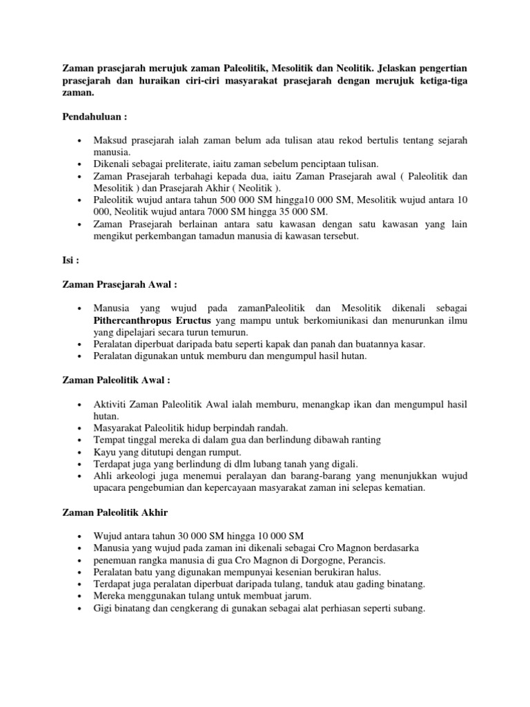 Doc Documents Tips Zaman Prasejarah Merujuk Zaman Paleolitik Mesolitik Dan Neolitik Ahmad Azizi Academia Edu