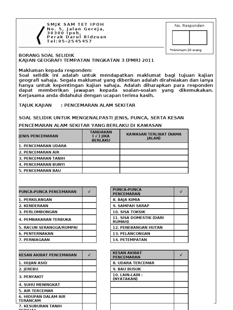 Borang Soal Selidik Geografi Pt3 2020 Contoh Terbaik