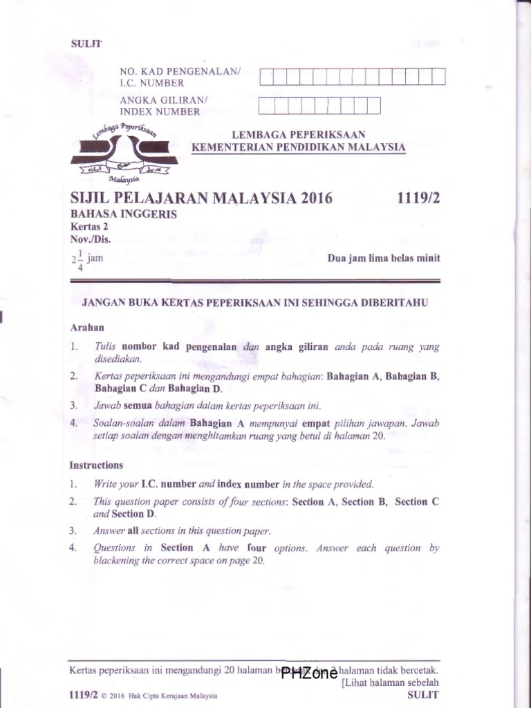 Contoh Soalan Spm Bahasa Inggeris Paper 2 Kecemasan C