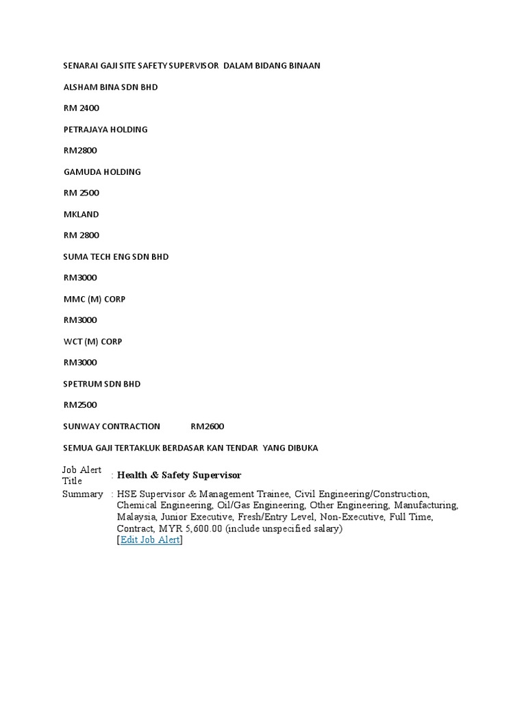 Gaji Site Safety Supervisor Sss Fresh Graduate