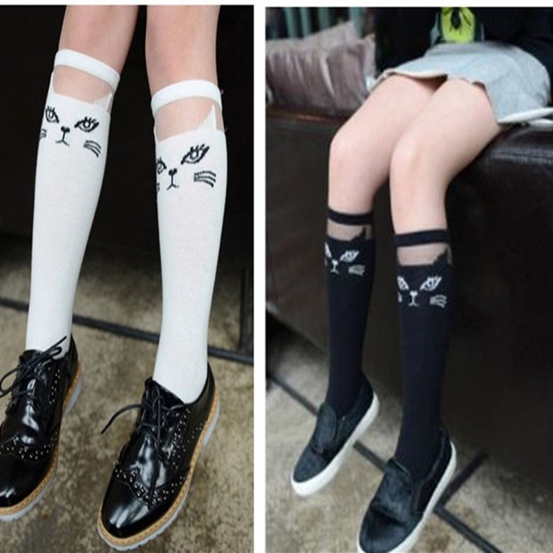 Kaos Kaki Katun Anak Perempuan Gambar Kartun Kucing Warna Hitam Putih Shopee Indonesia