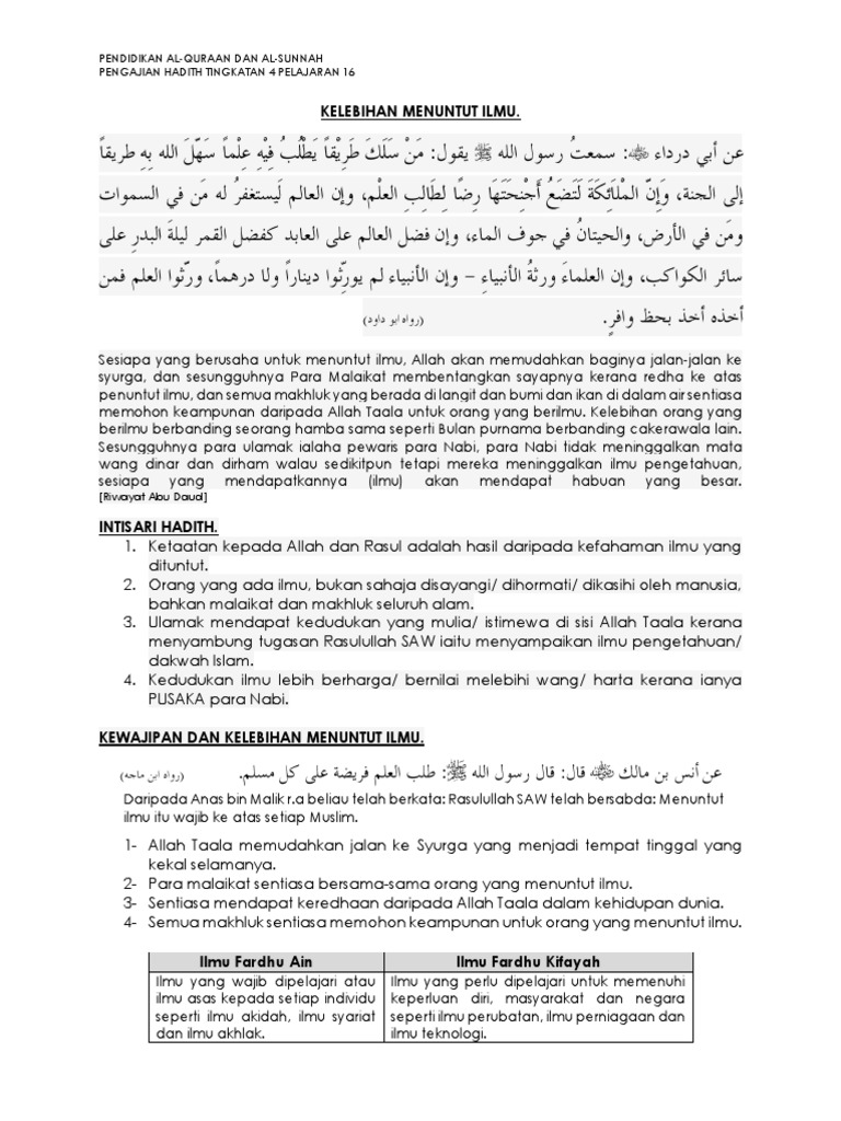 Hadis Kelebihan Menuntut Ilmu Tingkatan 4