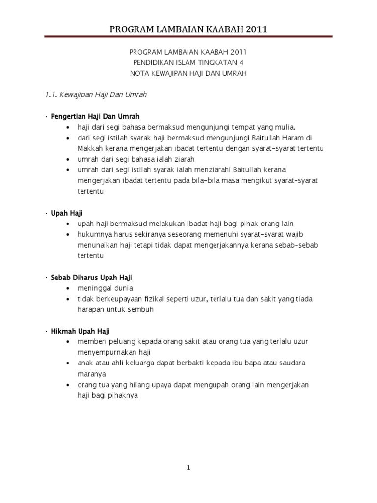 Panitia Pendidikan Islam Nota Haji Dan Umrah Tingkatan 4