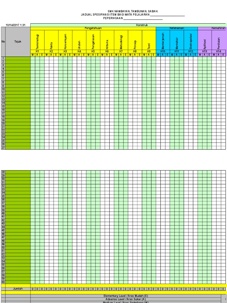 Jadual Spesifikasi Ujian Ujian 1 Penggal 1 Ujian 2 Peperiksaan Akhir Tahun 2017 Linguistic Morphology Syntactic Relationships