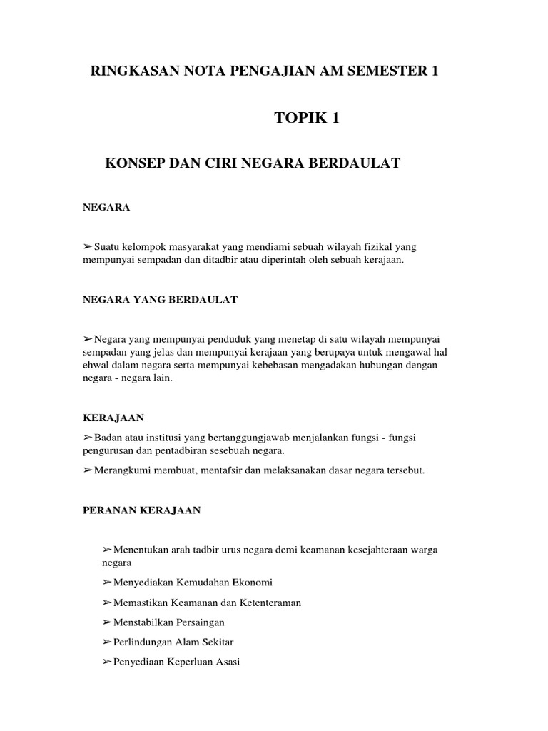 Nota Ringkas Pengajian Am 900 1 Penggal1