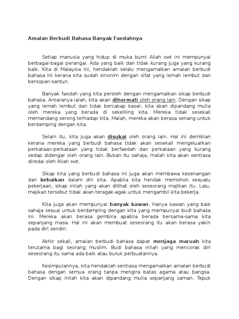 Usaha Memupuk Amalan Berbudi Bahasa Dan Kepentingannya Docx