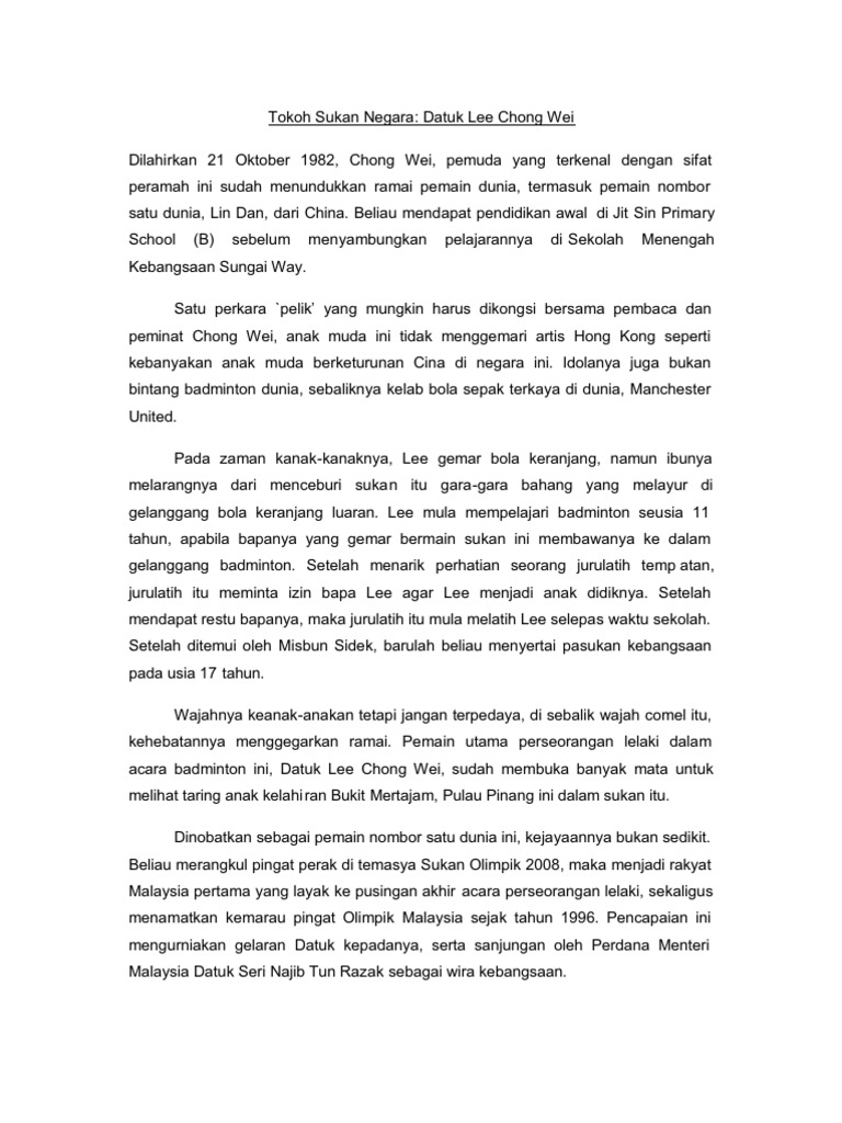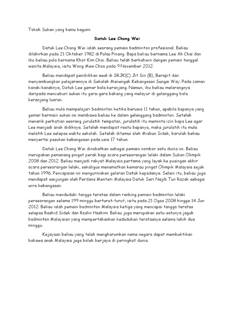 Contoh Karangan Tokoh Sukan Yang Saya Kagumi