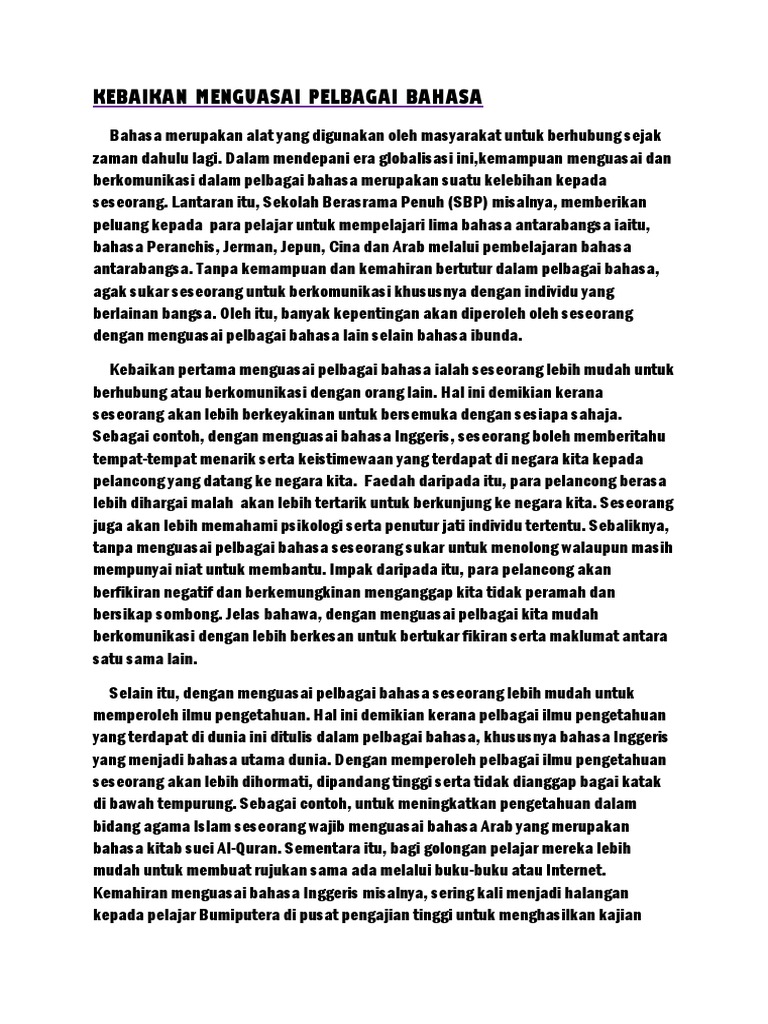 Latihan Kloz Kebaikan Menguasai Pelbagai Bahasa Docx Document