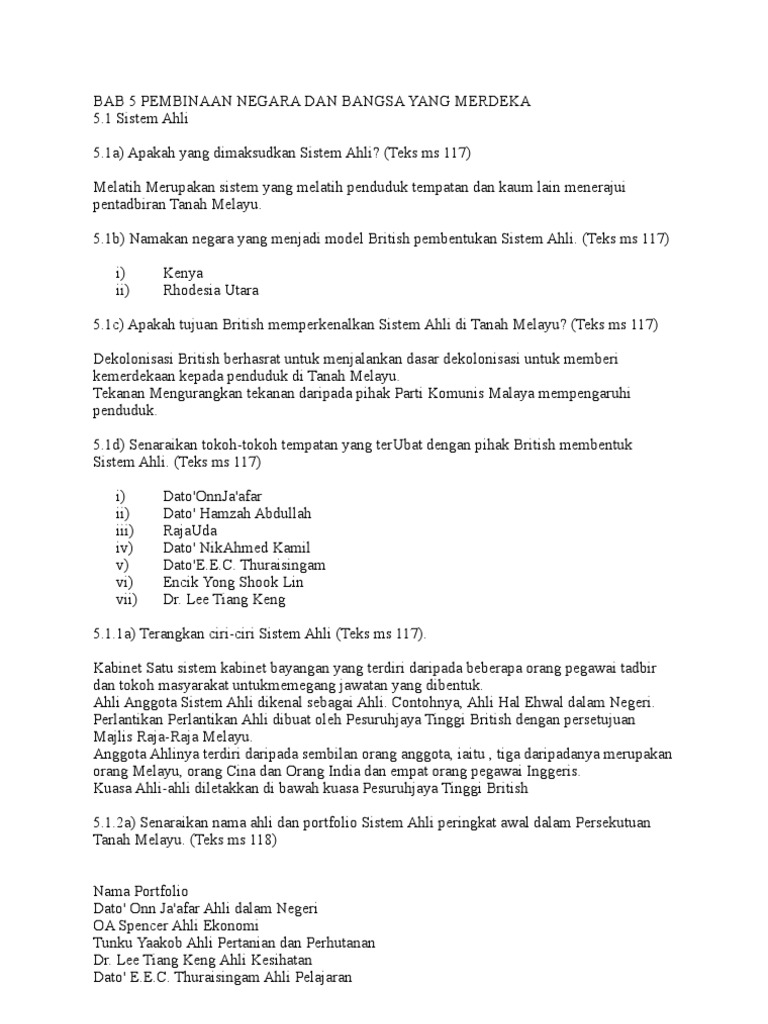 Sejarah T5 Bab 5 Pembinaan Negara Dan Bangsa Yang Merdeka