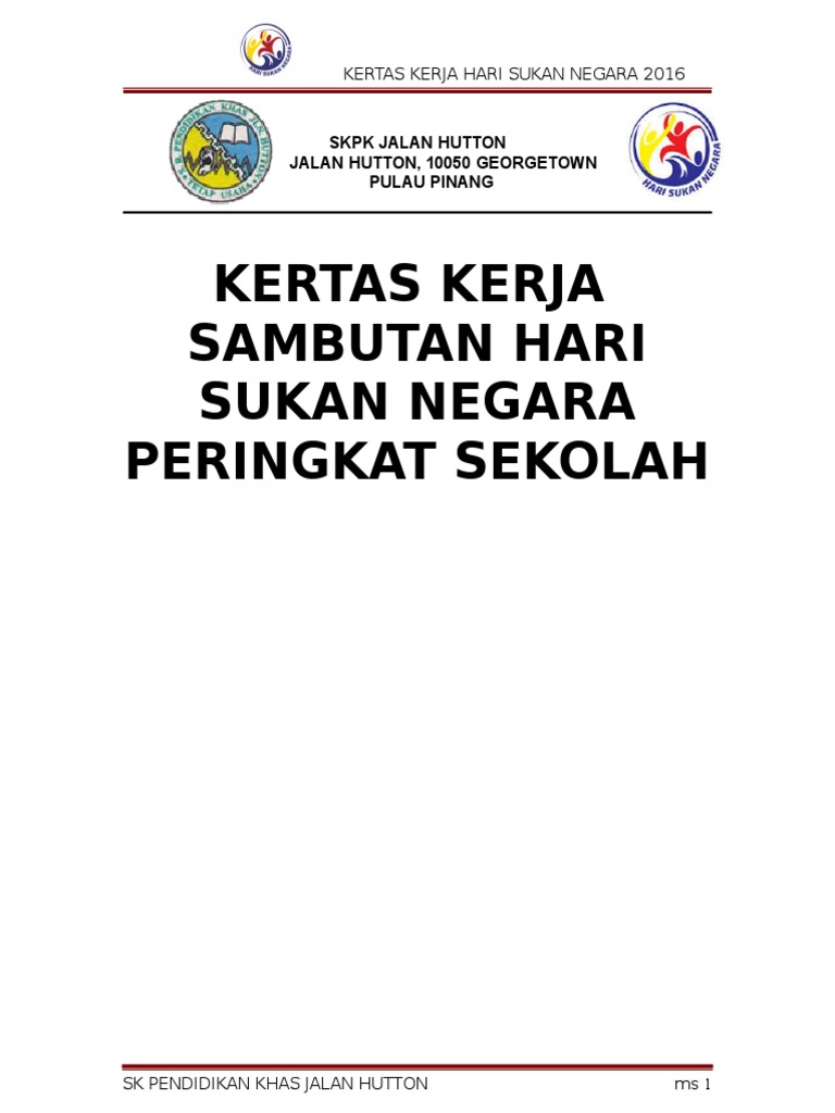 Kertas Kerja Hari Sukan Negara Peringkat Sekolah