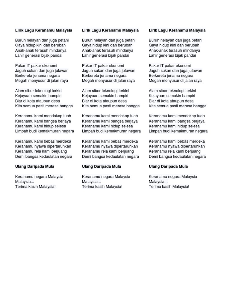 Lirik Lagu Patriotik Malaysia Docx