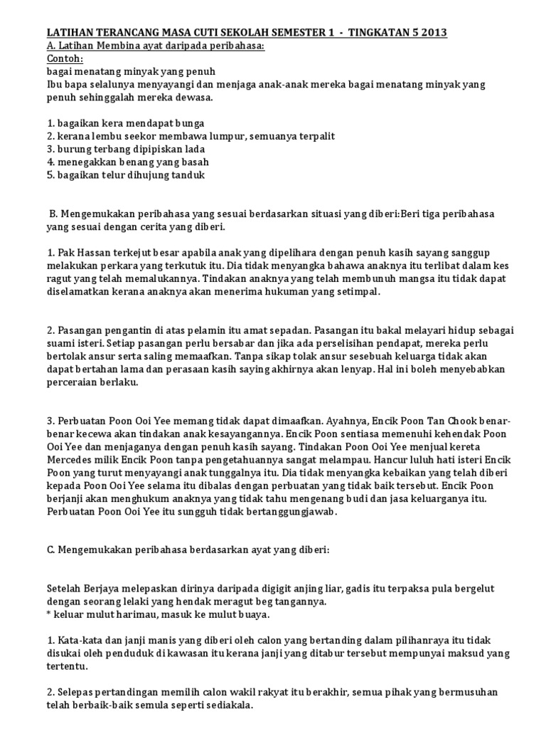 Latihan Terancang Masa Cuti Sekolah Semester 1 Tingkatan 5 2013