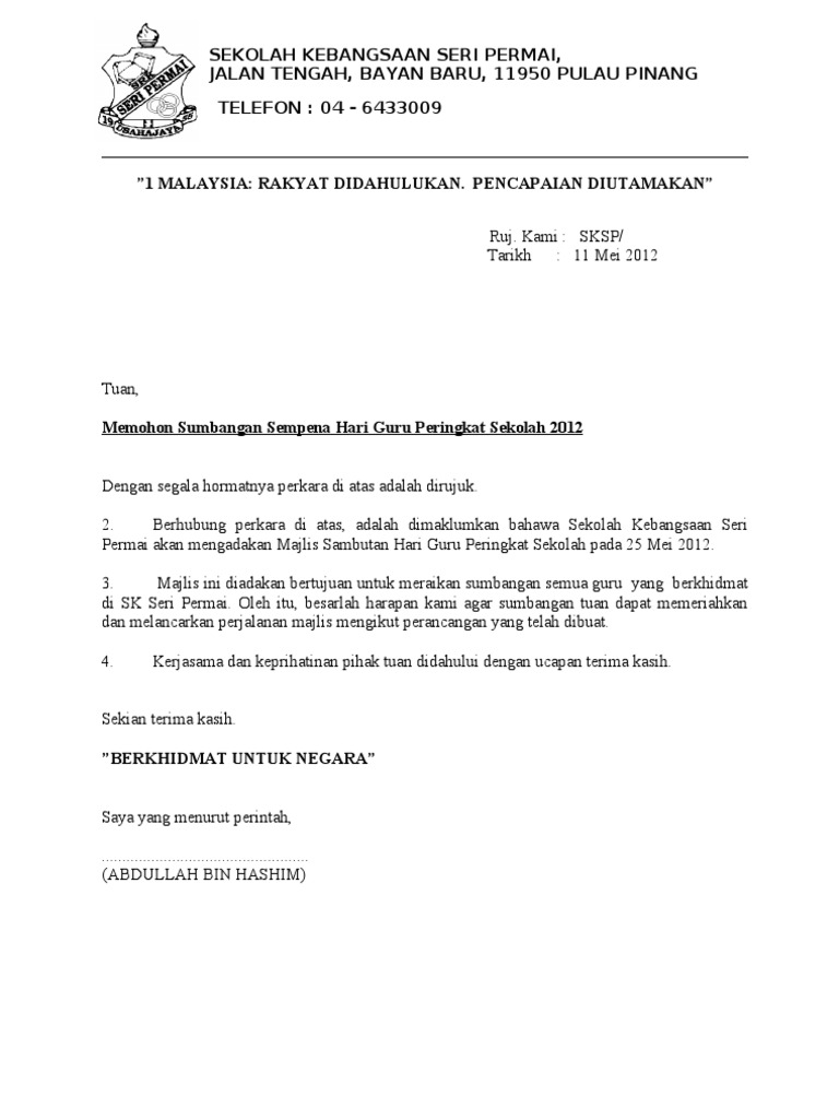 Surat Iringan Letter Head Sekolah