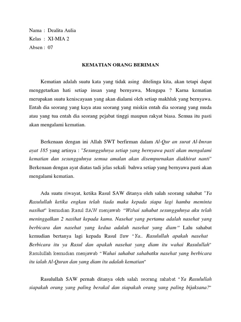 Za Dunia Kematian Kullunnafsin Zdaa Iqatulmaut Setiap Yang Bernyawa Pasti Mati Ada 3 Hah Dalam Kematian 1 Harta Kalau Ada 2 Keluawarga Dan Kaum Kerabat Teman Tetangga Kalau Masih Punya 3