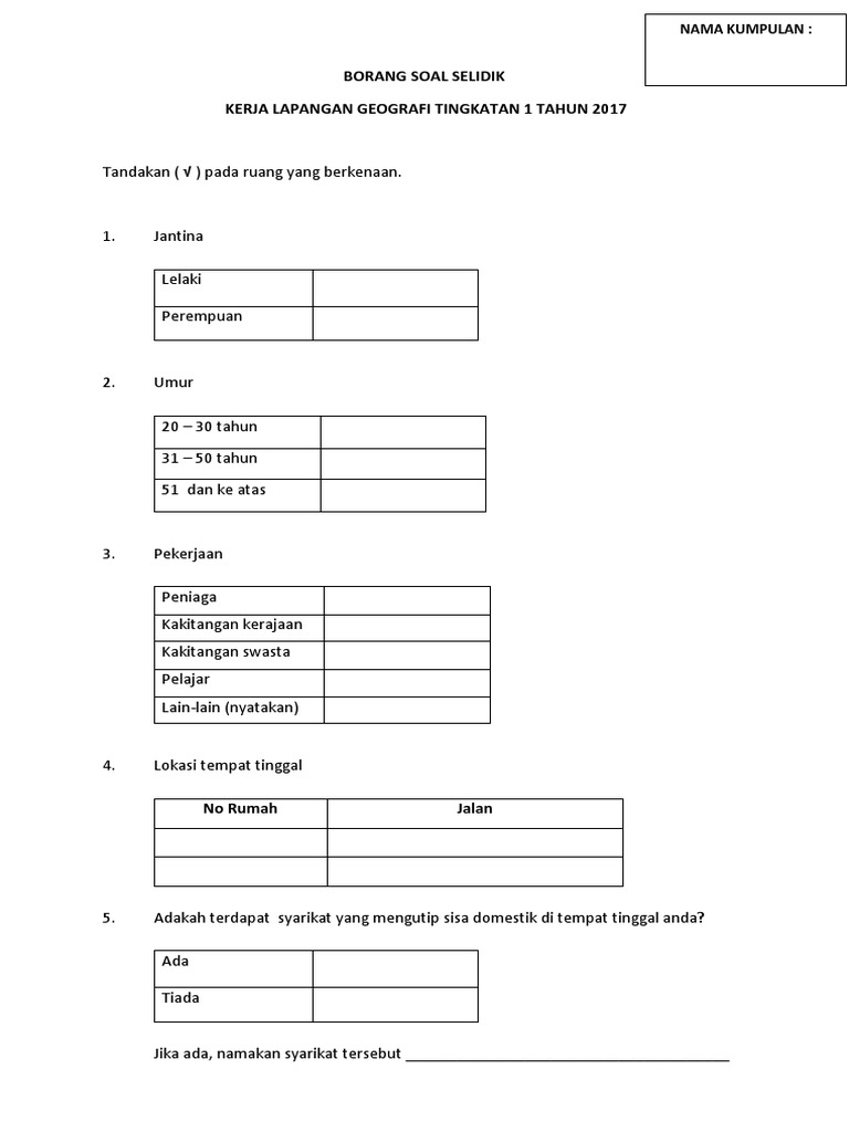 Contoh Borang Soal Selidik Geografi Tentang Sisa Domestik