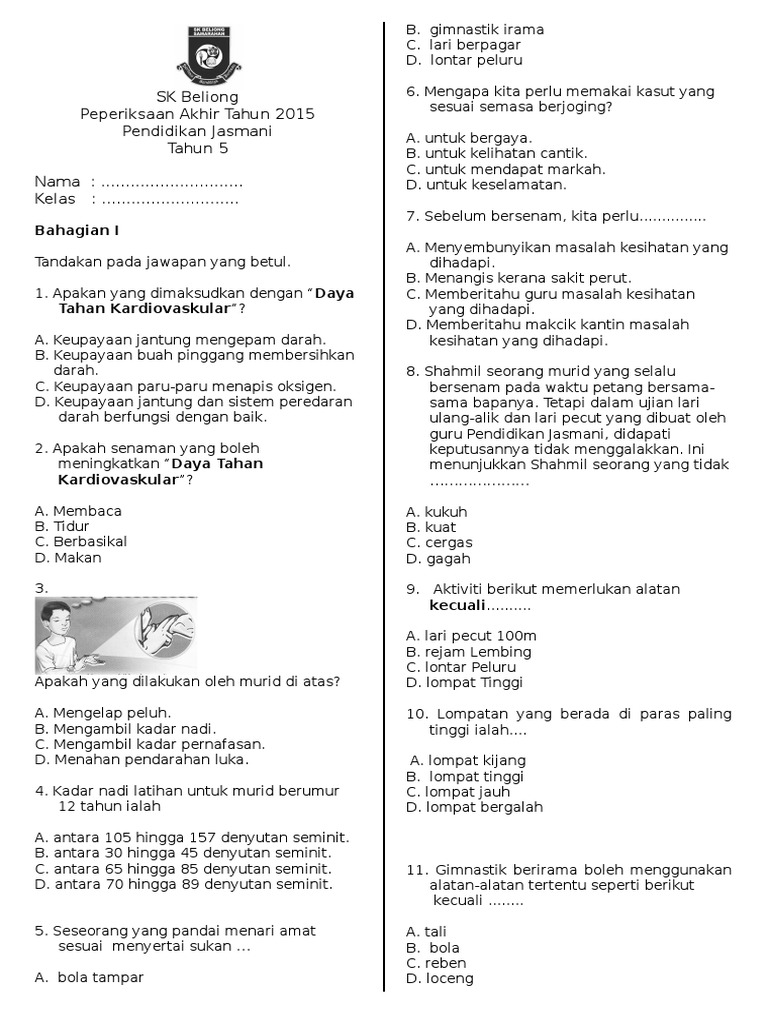 Kertas Ujian Pendidikan Jasmani Kesihatan Tahun 5 Fails Education Padang