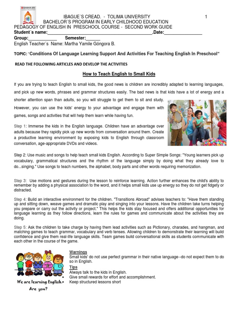 2nd Guide Pedagogy Of English In Preschool Course 2 Noun Preschool